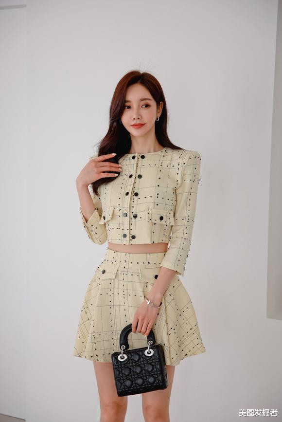 孙允珠迷人穿搭: 柠檬茶姜黄斑点星辰高腰衣裙